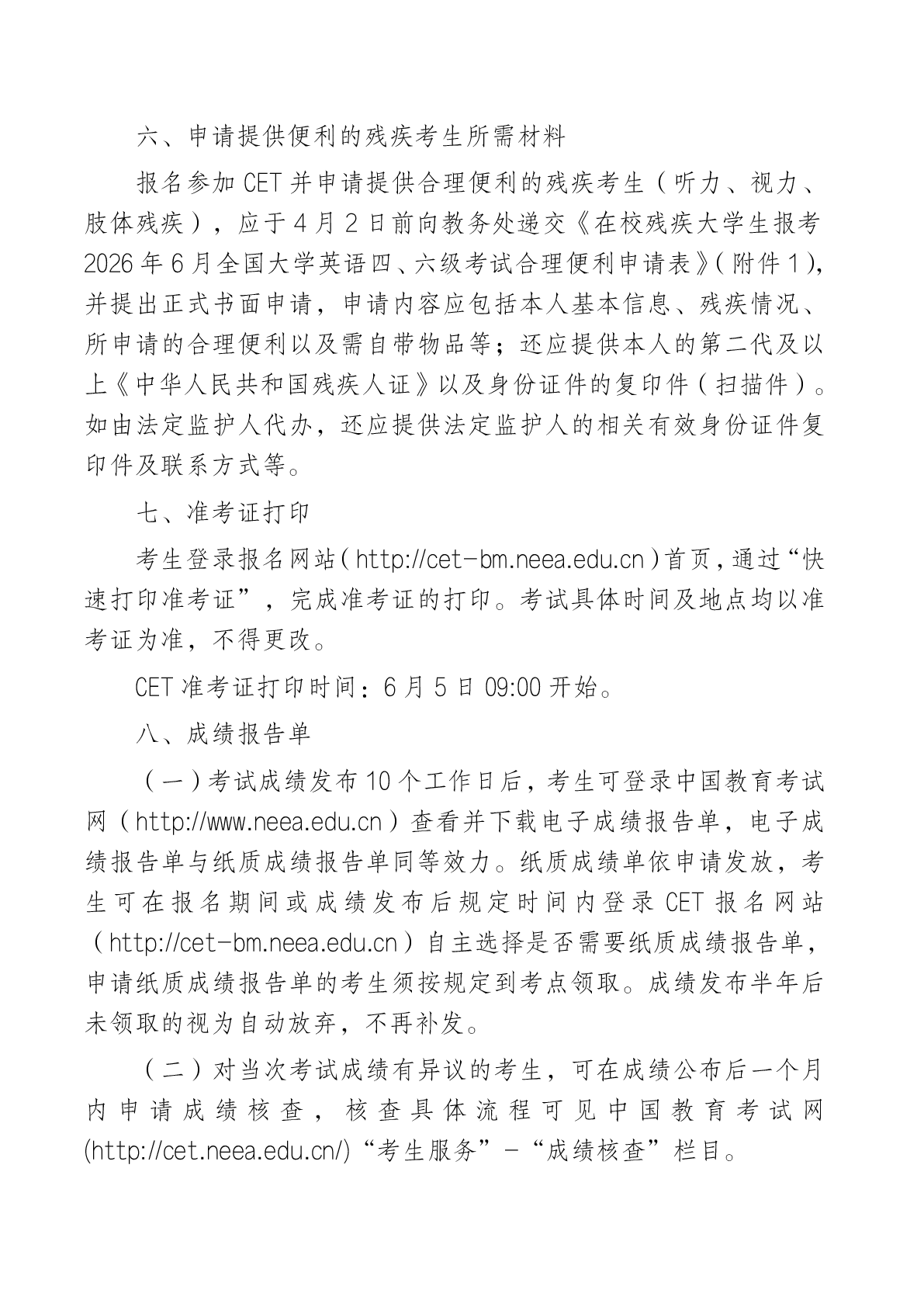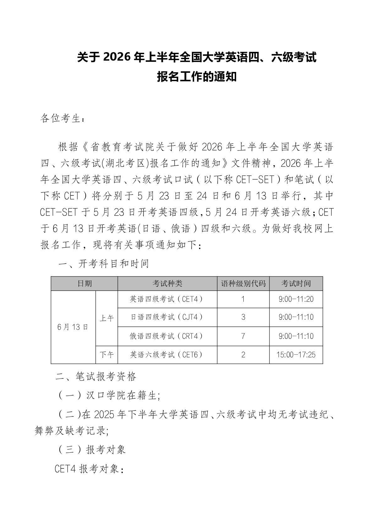 关于2026年上半年全国大学英语四、六级考试报名工作的通知