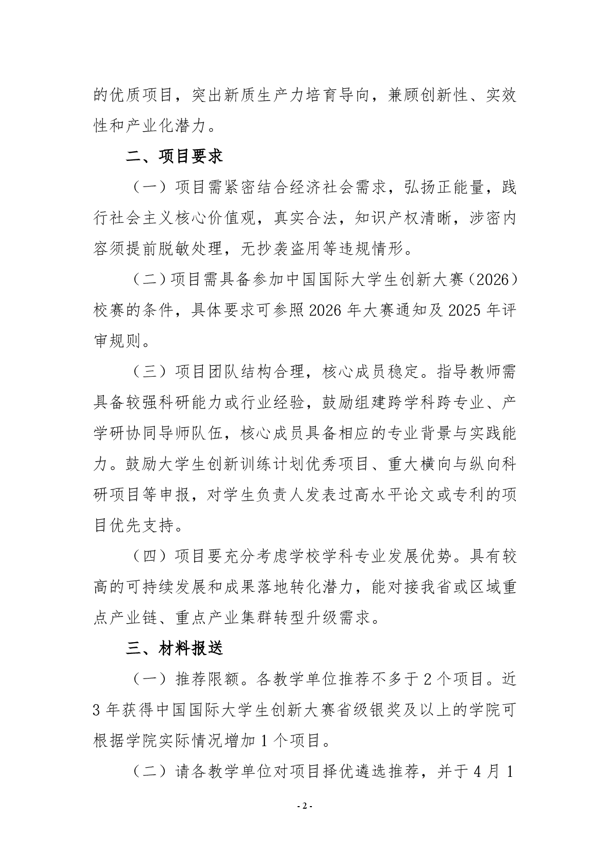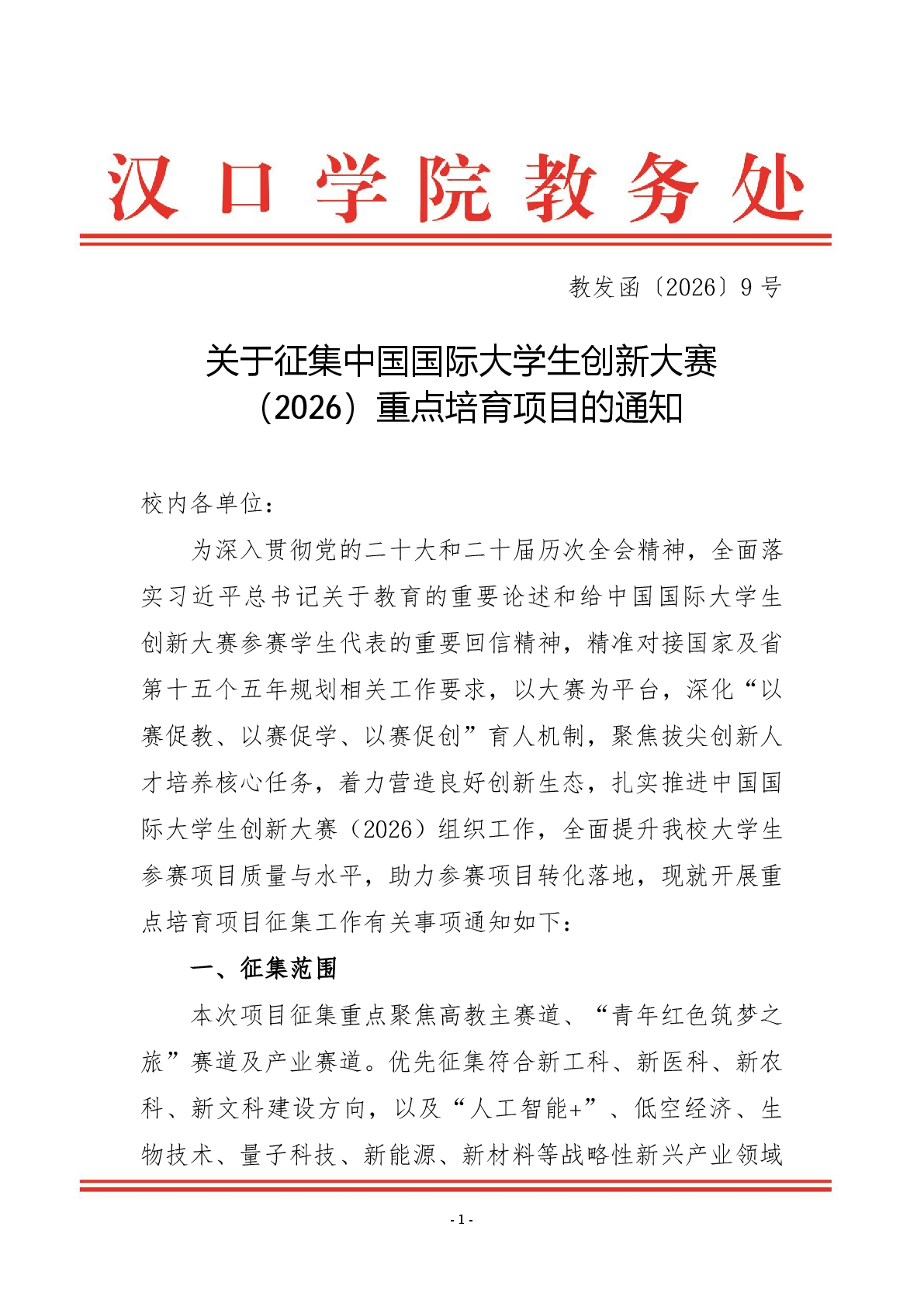 关于征集中国国际大学生创新大赛(2026)重点培育项目的通知