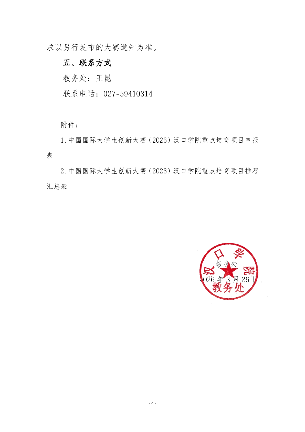 附件1:中国国际大学生创新大(2026)汉口学院重点培育项目申报表20260326.doc